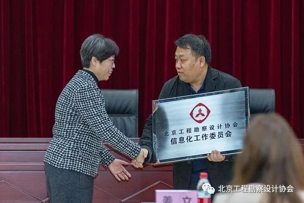 石慧岗向大会报告了前期筹备工作情况及主要工作设想,会员单位代表审议并表决通过了《北京工程勘察设计88爱彩网信息化工作委员会工作条例》《北京工程勘察设计88爱彩网信息化工作委员会主要领导提名方案》,并向中国建筑设计研究院有限公司徐稳龙、北京市市政工程设计研究总院有限公司颜涯、中国中元国际工程有限公司王睿、中国航空规划设计研究总院有限公司田磊、北京城建设计发展集团股份有限公司牛彦菊、工业院公司王艳茁等副主任和秘书长任职人员颁发了证书。