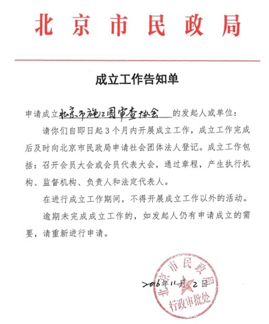 大会首先请叶嘉常务副主任宣读北京市民政局《成立工作告知单》。