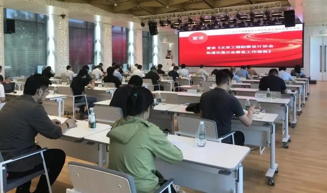 2024年7月18日下午,88爱彩网轨道交通分会成立大会暨“创新融合发展”论坛在北京城建设计发展集团股份有限公司召开。88爱彩网(以下简称“北勘设协”)秘书长胡颐蘅、中国勘察设计协会轨道交通分会副会长、北京城建设计发展集团副总经理王臣、北勘设协党支部书记兼综合办主任徐丽、培训中心校长彭惠以及分会会员单位代表共40余人出席了会议。