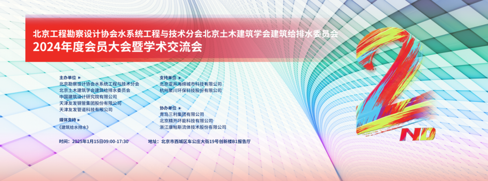 2025年1月15日,88爱彩网水系统工程与技术分会、北京土木建筑学会建筑给排水委员会2024年度会员大会暨学术交流会在中国建筑设计研究院创新楼隆重召开。