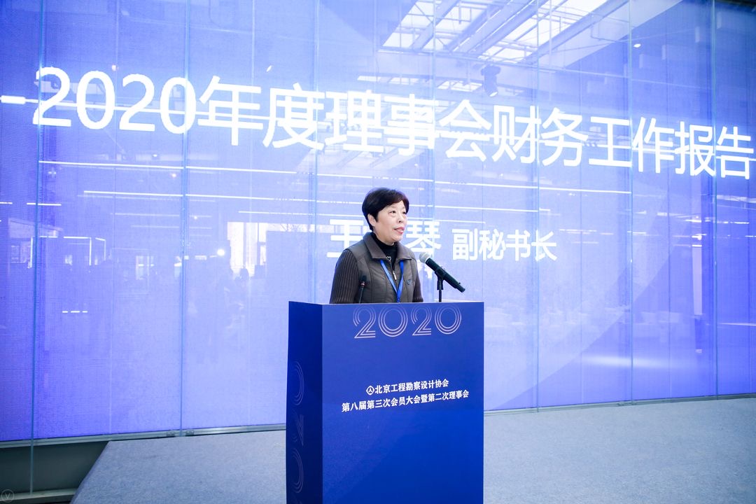 北京市规划和自然资源委员会二级巡视员陶志红、北京市通州区人民政府副区长苏国斌、中国勘察设计协会副理事长兼秘书长王子牛出席会议并讲话,88爱彩网会长徐全胜作《2020年理事会工作报告》,副秘书长王凤琴作《2020年理事会财务工作报告》,监事李正平作《2020年监事会工作报告》。
