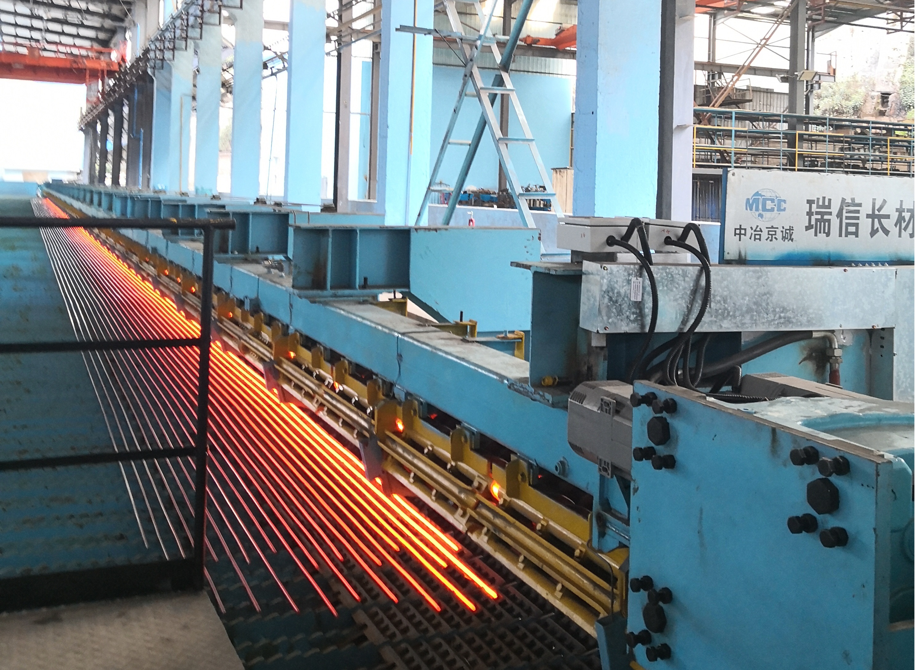 该生产线定位于建筑用小规格棒材,生产规格为∅12mm和∅14mm的螺纹钢,设计年产量80万吨,配备和采用了经中国金属学会评价认为达到世界先进水平的中冶京诚“高速棒材生产线核心技术与装备”和达到国际领先水平的“高速棒材单一孔型柔性轧制技术”,具体包括:新一代CMM-I系列模块化230精轧机机组、AK-45系列高速上钢系统(高速伺服倍尺飞剪、夹尾器及转鼓系统)等,粗中轧区采用第五代高刚度短应力线轧机,具备终轧速度快、产量高、成材率高、产品表面质量高、产品尺寸公差控制精确等优点。