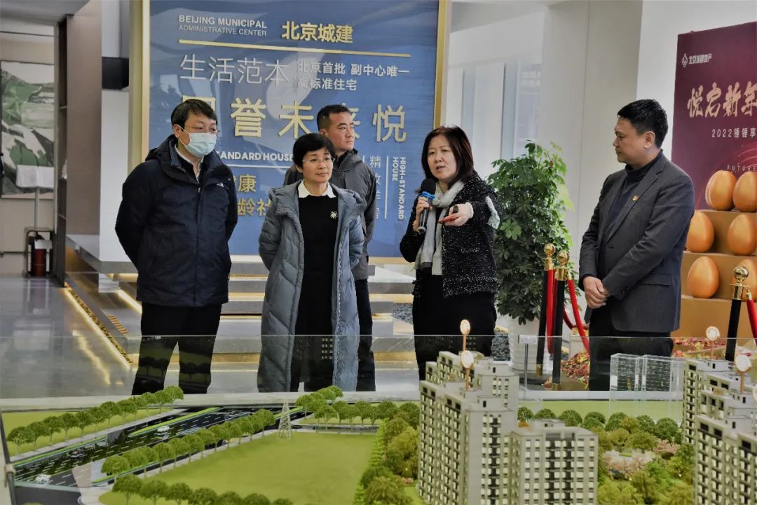 国誉未来悦是2021年北京市首批集中供地高标准住宅项目,也是副中心首个高标准+建筑师负责制项目。北京城建兴泰房地产开发有限公司总经理郭万东、北京市住宅建筑设计研究院副总经理、该项目责任建筑师易涛及该项目高标准技术咨询负责人果海凤代表项目团队,详细介绍了项目的规划、设计方案和技术亮点等,总经理钱嘉宏引导参观了项目沙盘、样板间。