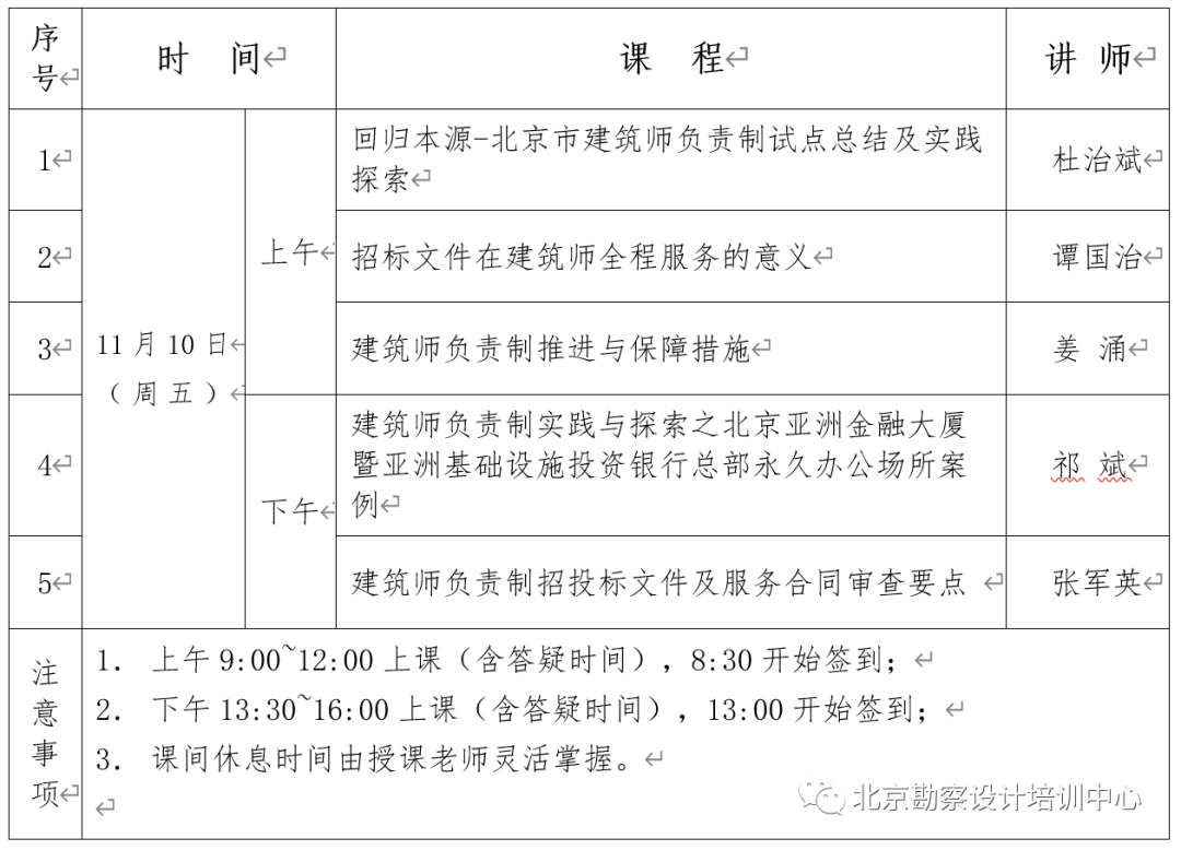原定于2023年10月27日的建筑师负责制培训时间变更为2023年11月10日(周五),给您带来的不便,敬请谅解!请各单位、各企业积极组织参加学习,其他具体事项如下: