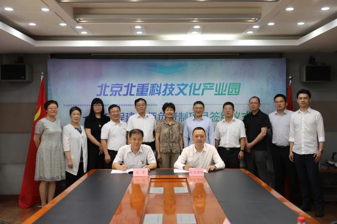 8月20日,北京市建筑设计研究院有限公司与北京重型电机厂有限责任公司举行北重科技文化产业园一期工程签约仪式。北京建院党委书记、董事长、北勘设协会长徐全胜,科技质量中心主任柳澎,第五建筑设计院院长马跃,副院长鲁晟,五院创研中心副主任张昕;北京京城机电控股有限责任公司房地资源部部长夏中华,房地产资源部成本核算主管周贺;北京重型电机厂有限责任公司党委书记、董事长张岩松,党委副书记、总经理苏富文,房地资源总监、产业园开发事业部总经理张燕玲,产业园开发事业部副总经理樊檾等嘉宾以及相关部门负责人出席签约仪式。