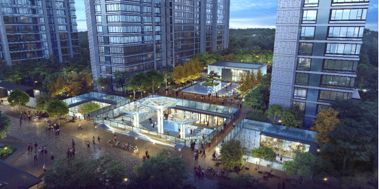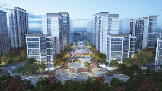 (2)院落式邻里社交园:溯源中国传统院落式布局,通过不同尺度的退让、围合和高低错落的建筑布局、形成三个静谧组团院落,设置符合老人、儿童、年轻人活动主题的公共场所,创造舒适宜人的邻里社交园。